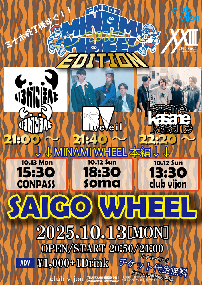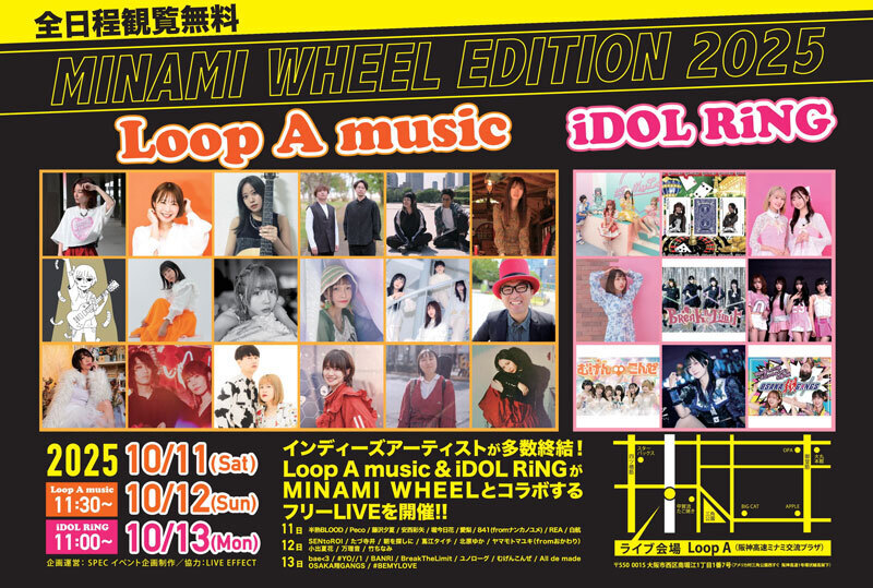 ※『MINAMI WHEEL EDITION』は、MINAMI WHEELから派生した音楽イベントを装飾した呼称であり、各イベントの責任主体は各公演主催者となります。