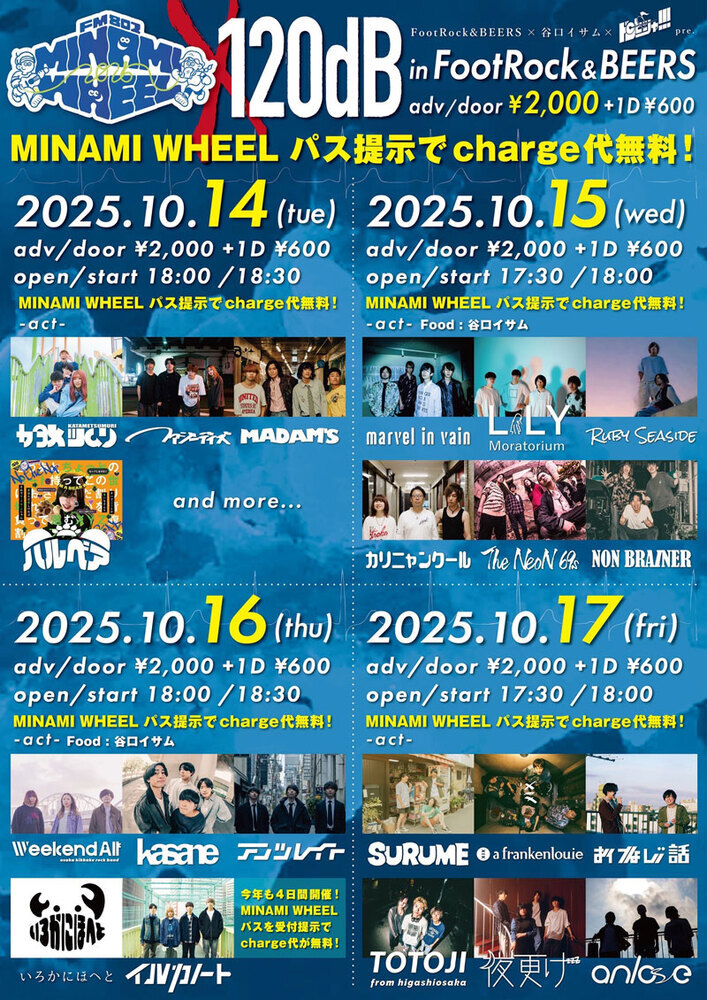谷口イサム & FootRock&BEERS & ドンピシャ!!! pre. 120dB × MINAMI WHEEL after event