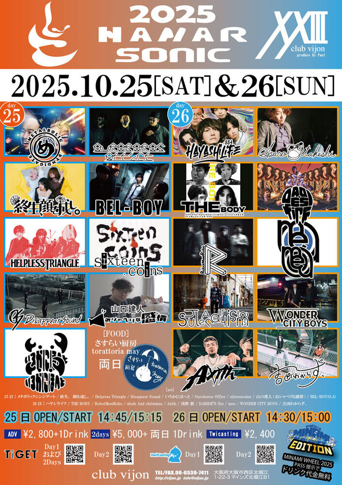 日時 10/25(土)、10/26(日) OPEN=25日:14:45 26日:14:30