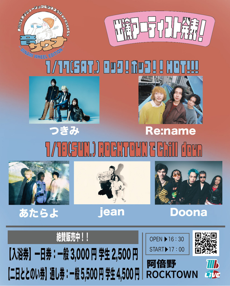 出演 1/17(土):つきみ / Re:name 1/18(日):あたらよ / jean / Doona